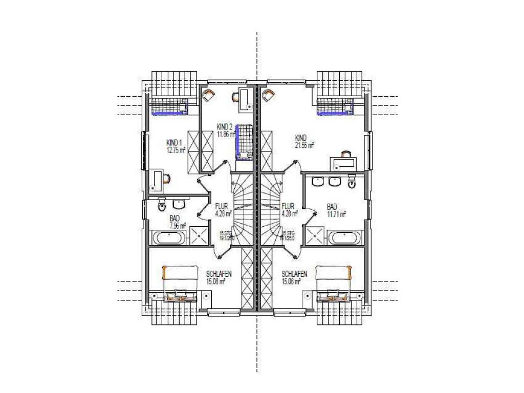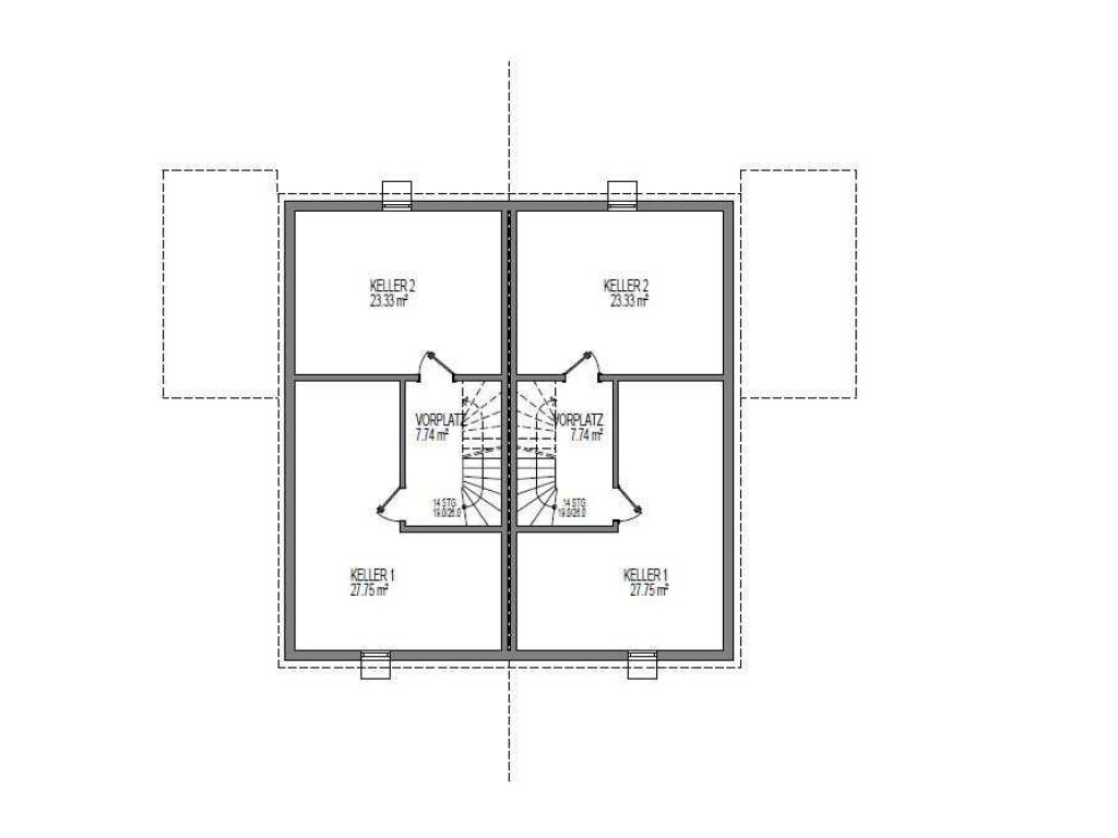 Es entstehen Doppelhaushälften mit Wohnflächen von insgesamt ca. 129,00 m² (wahlweise mit und ohne Keller, Nutzfläche Keller ca. 50m²), welche sich auf zwei Vollgeschosse (Erd- und Obergeschoss) sowie das Dachgeschoss (Studio) wie folgt verteilen: