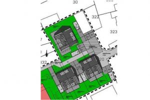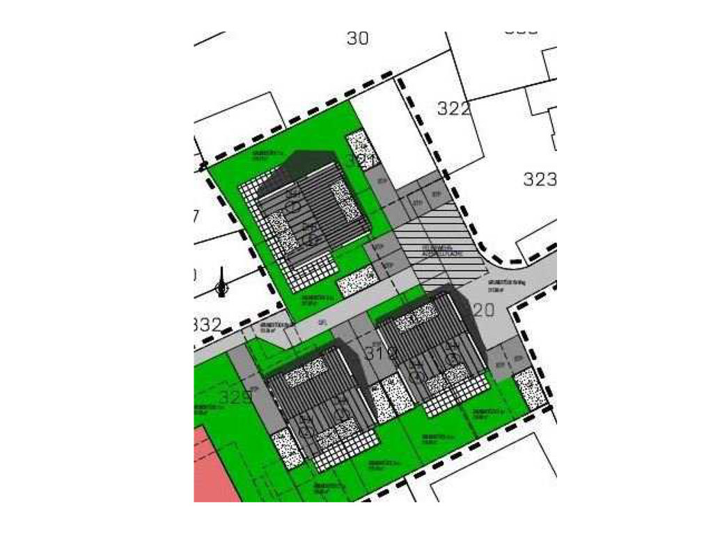 Die hier entstehende Wohnanlage wird zunächst mit 6 Doppelhäusern bebaut.